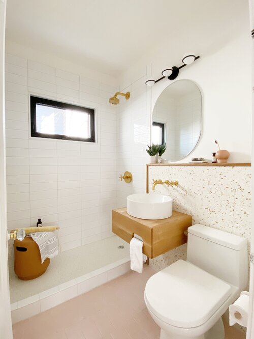 比如淋浴房的地面使用防水耐水性好的地磚或馬克,而在衛生間入口和洗漱臺則使用防水的室外地磚。如果浴室需要安裝浴缸,那么可以安裝玻璃隔斷或浴簾進行遮擋并干濕分離。